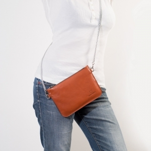 La pochette è dotata di una tracolla argentata con dei comodi moschettoni per uno sgancio rapido, ma è possibile usarla anche senza la catenella portandola comodamente in una mano.