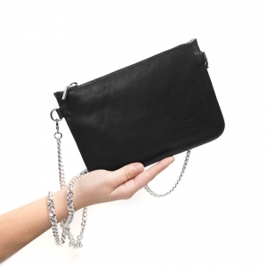 La pochette è dotata di una tracolla argentata con dei comodi moschettoni per uno sgancio rapido, ma è possibile usarla anche senza la catenella portandola comodamente in una mano.