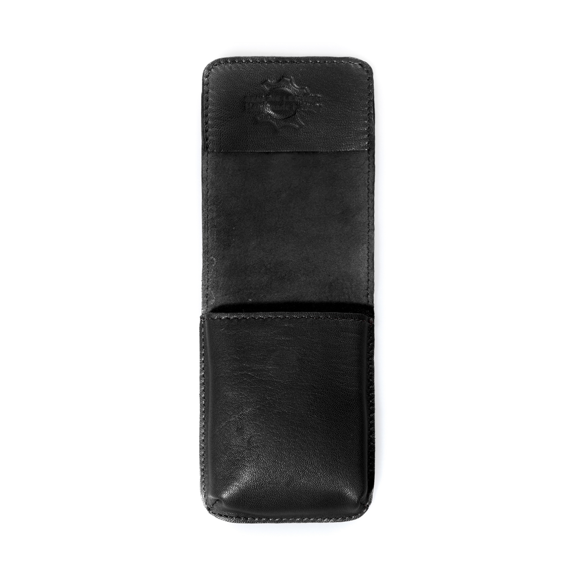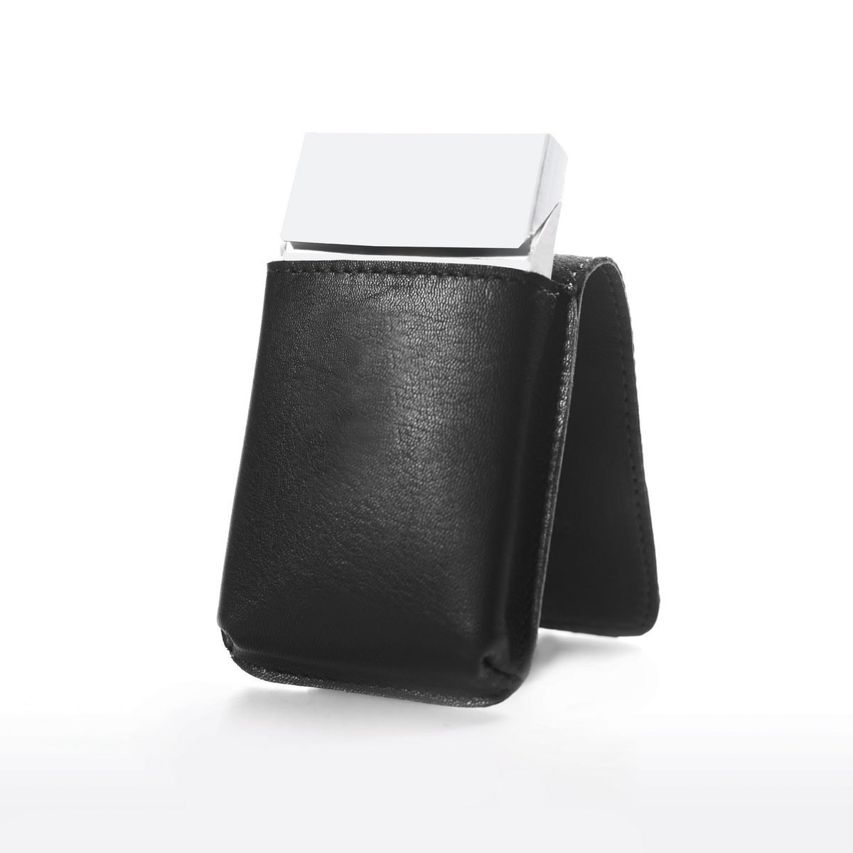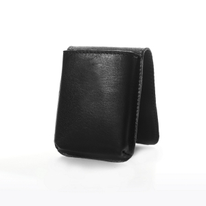 La patta, realizzata con un unico pezzo di pelle, si richiude su se stessa e si aggancia grazie alla presenza di una calamita nascosta in modo da evitarne l'apertura involontaria, ma allo stesso tempo, agevolarne l'utilizzo mantenendo pulito il design dell'accessorio.