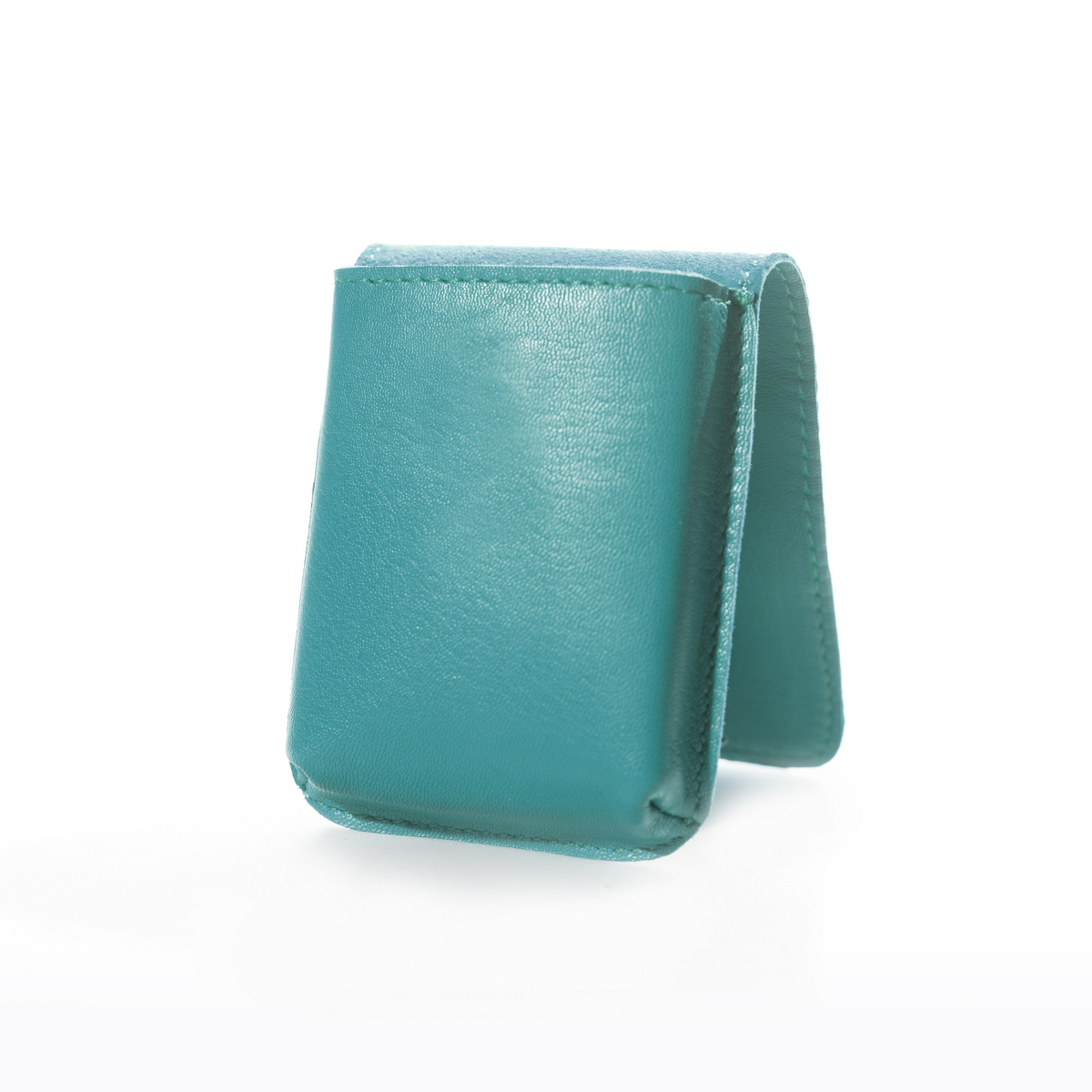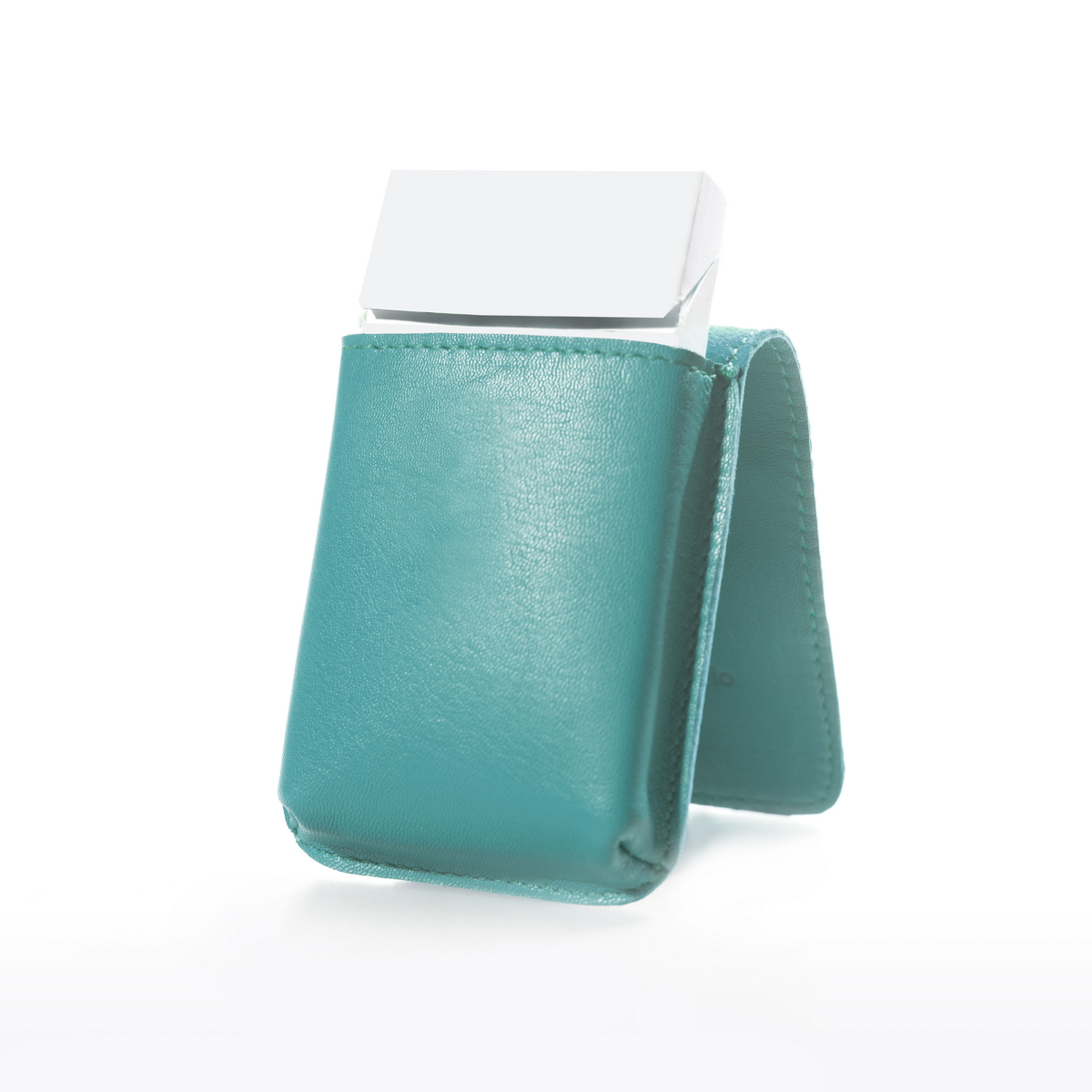 La patta, realizzata con un unico pezzo di pelle, si richiude su se stessa e si aggancia grazie alla presenza di una calamita nascosta in modo da evitarne l'apertura involontaria, ma allo stesso tempo, agevolarne l'utilizzo mantenendo pulito il design dell'accessorio.