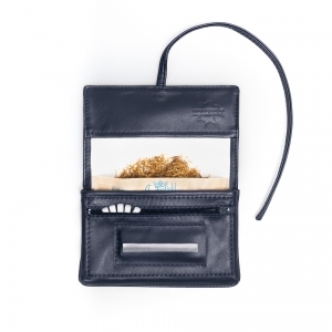 Il borsello è composto di una comoda tasca per inserire la busta di tabacco, una tasca con cerniera per conservare i filtri e un taschino porta cartine con la fessura per una rapida estrazione.