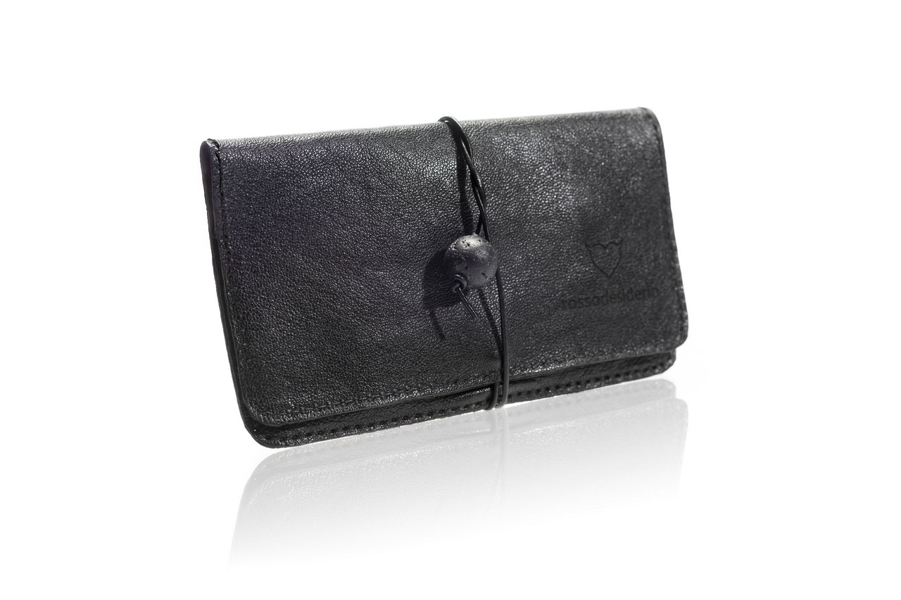 I portatabacchi della Linea Vesuvio sono tre, Lava, Fuoco e Cenere. Tutti e tre i modelli della Linea Vesuvio sono corredati di un laccetto in cuoio che termina con una tipica pietra lavica che oltre ad impreziosire il borsello ha la funzione di bloccare il laccio di cuoio in modo saldo e sicuro.